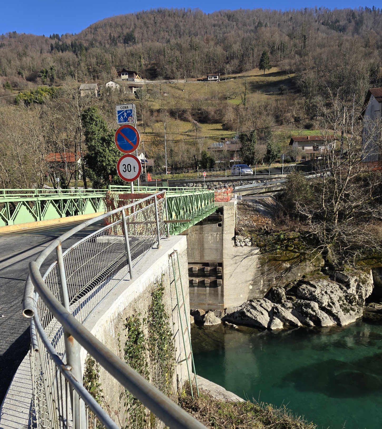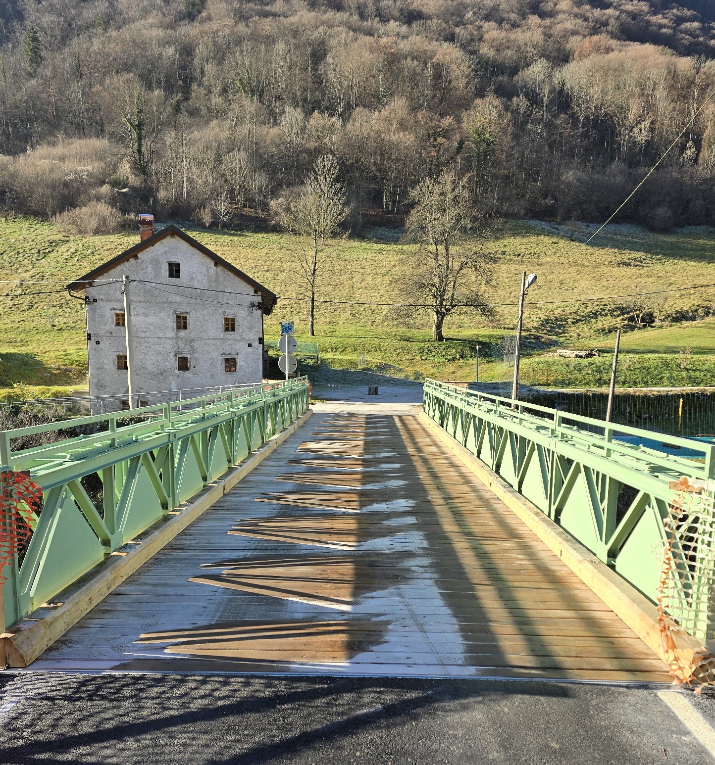 Občina Tolmin je v letošnjem letu v sklopu investicij na področju cestne infrastrukture namenila sredstva za obnovo mosta na Slapu ob Idrijci. Sanirala se je nosilna kovinska konstrukcija, na kateri se je zamenjalo poškodovane elemente in zaščitilo proti koroziji. Uredila se je voziščna konstrukcija, pri čemer so dosedanji asfalt nadomestili lažji leseni tramovi. Gradbeno podjetje Zidgrad d.o.o. iz Idrije je z gradbenimi deli v zaključni fazi. Za potrebe izdelave projekta izvedenih del in pridobitve uporabnega dovoljenja je naše podjetje izdelalo še ustrezni geodetski načrt izvedenih del.
